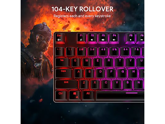 Rollover completo de N-Key: rollover de 105 teclas con anti-ghosting significa que este teclado nunca perderá una sola pulsación de tecla o confundirá sus comandos en cualquier escenario de caso de uso